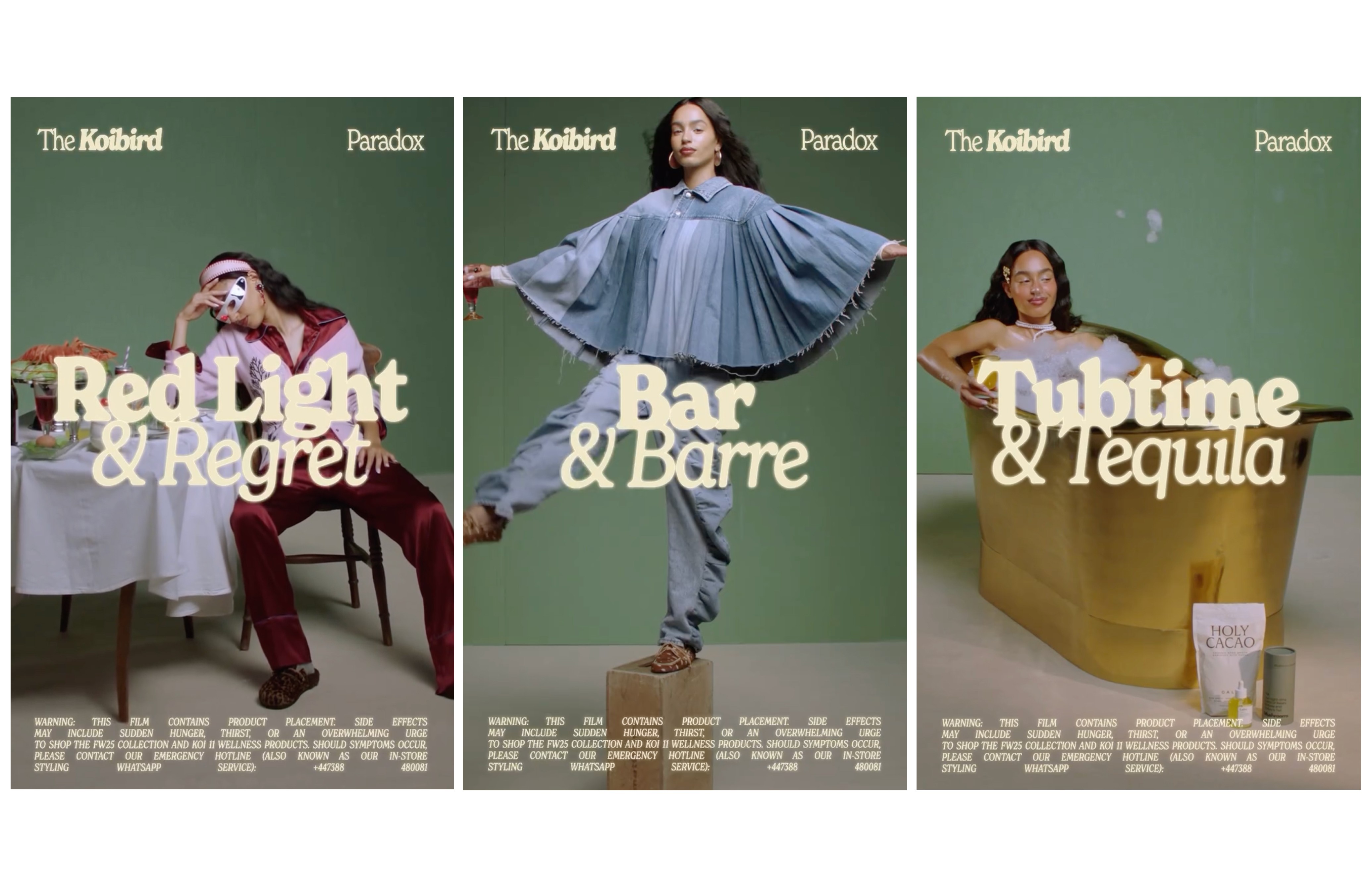 The Koibird Paradox embraced both the wild and well moments in a day in the life of a modern KOIGirl to support the launch of the kooky fashion store's new in-house wellness cafe. It reflected our audience back to them: they still have that fearless party spirit, but now, they also invest in taking care of themselves too.